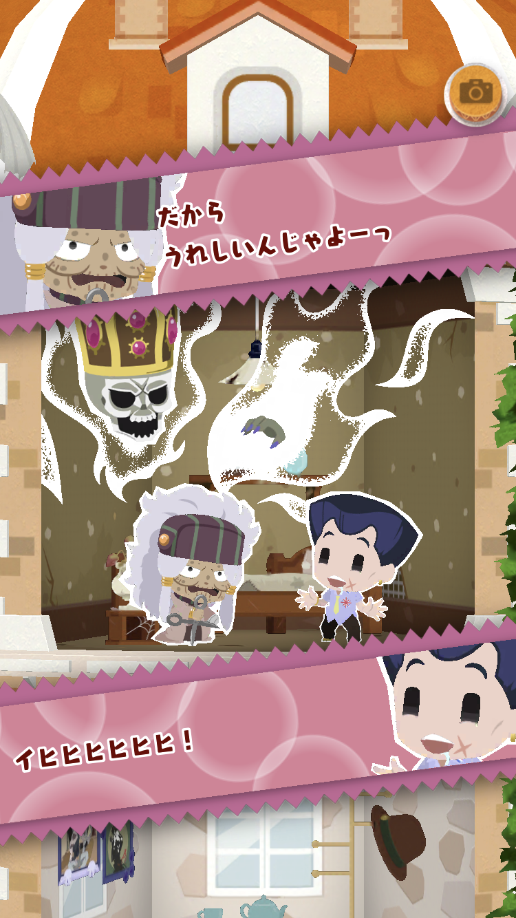 ティザーPVに「ジョジョマンションでキャラ同士の会話を楽しもう!」みたいなのがあって。でもこれぶっちゃけこれキャラがお互いの名言を各々叫んでるだけで、会話になってね〜じゃん って最初思ったんだけど、逆にキャラ同士のその勝手な独り言が微妙にかみあう瞬間があって、その瞬間に妙なおもしろさが発生するんだよね。ツイッター見ててもそういう「噛み合ってないのになんか噛み合ってる会話」のスクショが結構「ワロタ」って感じでアップされて一定の盛り上がりが見られているようなので、これはこれで正解と思うようになった。(ここまで計算して作ったんならすごいな。)