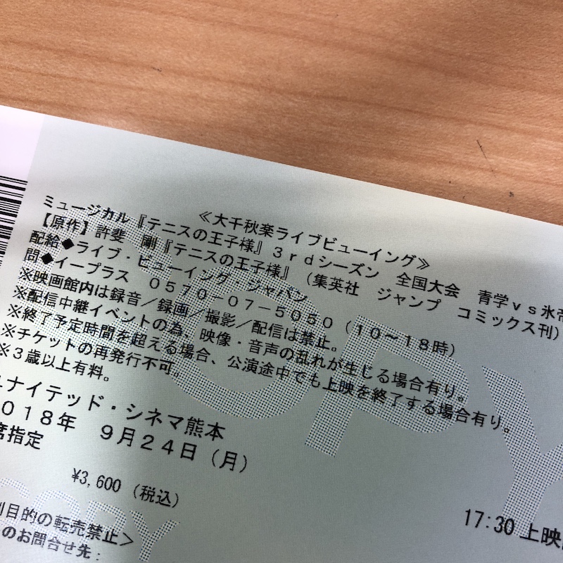 「ミュージカルテニスの王子様 全国大会 青学VS氷帝」の大千秋楽ライブビューイングに行ってきました。