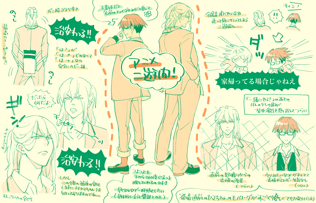 ヤマちゃん役の福山さんは、わたしほんと最初テニプリの謙也のイメージしかなくて、ヤマちゃん役と聞いて「声低くない!?」って思ってたのよね。でもあとで調べてたら「七つの大罪」のキング役とか出てきて「なるほどこれなら!」ってスッときた。地声結構低くてらっしゃるのに、ヤマちゃんのあの声の高さで演技できるのすごいな…。声優さんってすげえ…。(今更〜)